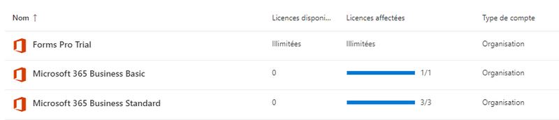 Les licences qui sont dans votre tenant mais où la quantité achetée est égale à 0, seront ignorées.