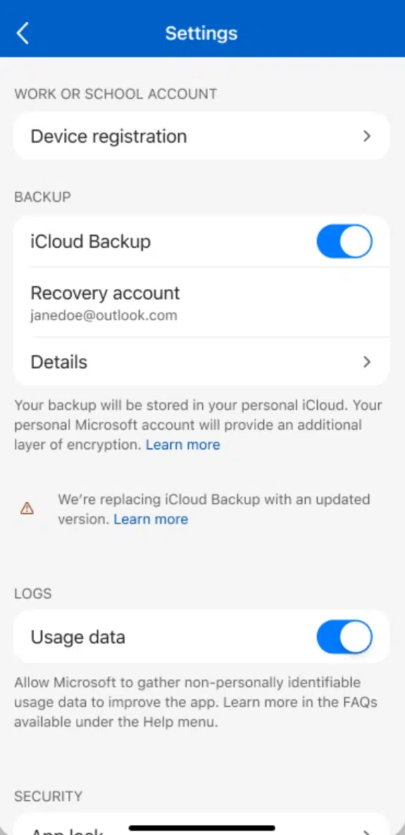 À partir du mois de septembre 2025, Microsoft Authenticator basculera la sauvegarde des informations d'authentification des utilisateurs iOS sur le trousseau iCloud du compte Apple connecté à iOS. Pour les entreprises disposant de compte Apple gérés (utilisés sur des iPhone gérés, par exemple), cela permet de stocker cette sauvegarde sur des comptes répondant aux politiques de l'entreprise. Pour les organisations ne disposant pas de comptes Apple gérés, ce sera un compte Apple personnel d'utilisateur qui sera utilisé.