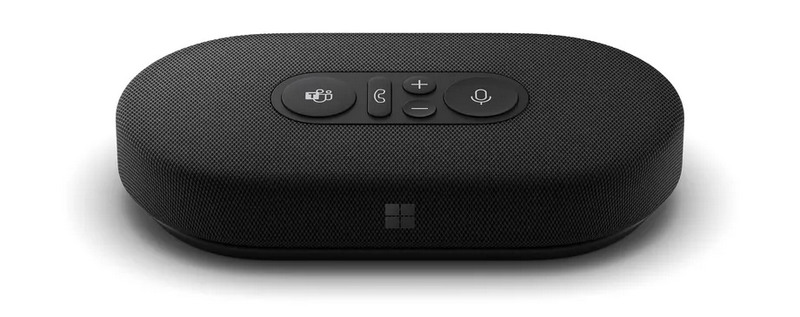 Enfin, la firme de Redmond va ajouter à son catalogue d'accessoires un haut-parleur USB-C pensé pour un usage avec Teams : il intègre un bouton pour interagir avec l'outil collaboratif de Microsoft. Il est équipé de plusieurs micros omnidirectionnels à réduction de bruit pour améliorer la qualité audio de vos visioconférences. Il sera lui aussi disponible en juin, pour 100 euros environ.