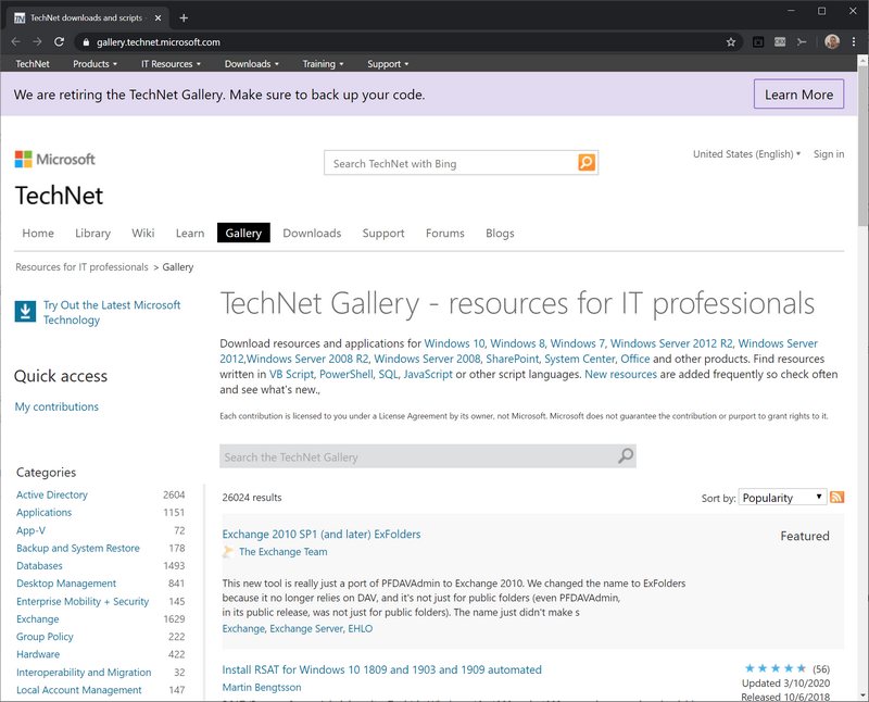 En mars dernier, Microsoft avait annoncé son intention de fermer son site communautaire Technet Gallery, utilisé pour partager des scripts, des outils, et des guides pour l'utilisation des produits et services Microsoft.
