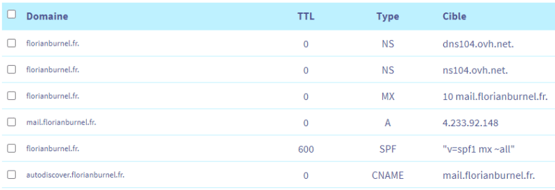 | CNAME | autodiscover.domaine.fr | mail.domaine.fr | - |