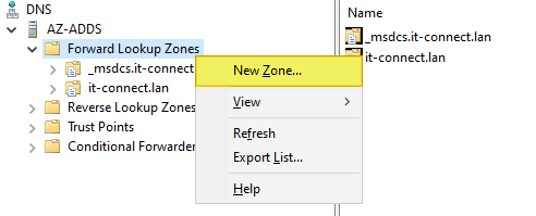 Ouvrez la console DNS et créez une nouvelle zone. Un assistant s'exécute.