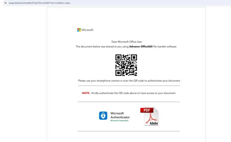 Microsoft Sway utilisé dans une importante campagne de phishing par code QR !