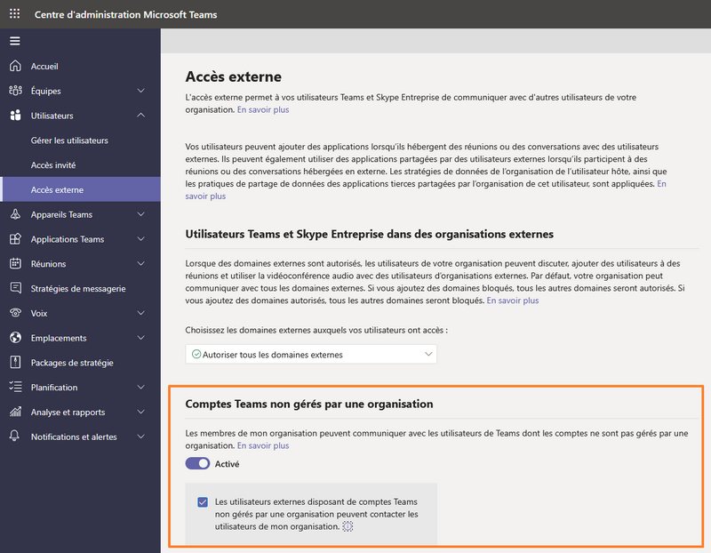 Pour les utilisateurs professionnels de Teams, il était déjà possible d'engager une conversation avec une personne externe à l'entreprise, tout comme il était possible d'inviter une personne extérieure (avec un compte pro) au sein d'une équipe Teams en tant qu'invité. Maintenant, les conversations vers l'extérieur peuvent être effectuées vers un compte personnel.