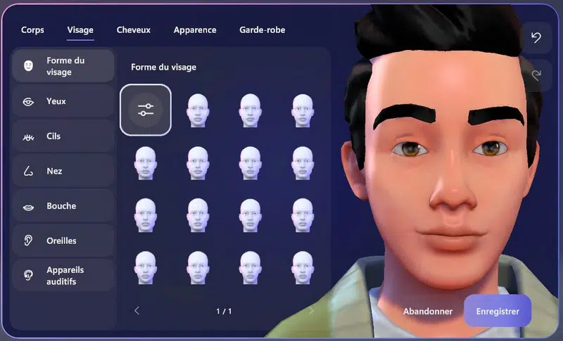Je ne vais pas rentrer dans les détails car c'est simple à utiliser, mais vous pouvez personnaliser votre avatar : forme du visage, yeux, nez, bouche, oreilles, appareils auditifs, cheveux, barbe, etc... Tout comme la tenue vestimentaire, avec la possibilité de choisir la couleur des vêtements. On peut aussi maquiller en quelque sorte son avatar 3D... Les femmes apprécieront.