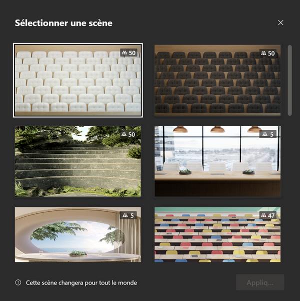➡ Envie d'utiliser une scène personnalisée ? Suivez ce tutoriel : Teams - Image personnalisée mode together