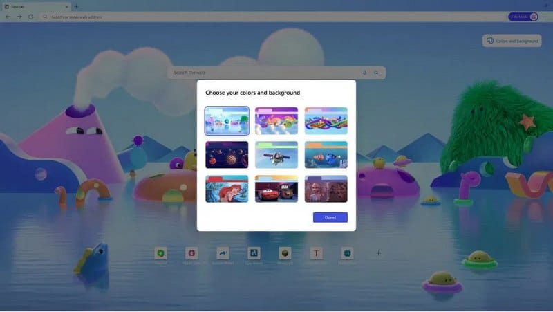 ➡ Le mode Enfants : avec le mode "Microsoft Edge Kids", Microsoft propose de basculer dans un mode restreint sans devoir utiliser un profil dédié. Lorsque ce mode est actif, le navigateur bascule en mode "Strict" pour bloquer un maximum de traqueurs, bloquer certaines publicités, etc... En complément, les moteurs de recherche passent en mode "Safe Search" pour filtrer les résultats des recherches. Pour que ce soit agréable à utiliser par les enfants, Microsoft a travaillé avec Disney pour proposer des thèmes adaptés.