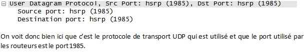 On voit donc bien ici que c’est le protocole de transport UDP qui est utilisé et que le port utilisé par les routeurs est le port 1985.