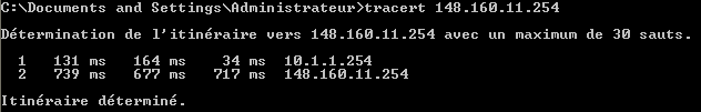 On peut maintenant définir un hôte qui aura pour passerelle le routeur virtuel 10.1.1.254. Si l’on fait un « traceroute » depuis cet hôte. Nous verrons qu’il passe bien par la passerelle virtuelle 10.1.1.254.