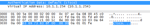 Qu’il soit celui laissé par défaut ou non, le mot de passe reste en clair et cela donne la possibilité à des attaquants d’envoyer des paquets en multicast 224.0.0.2 en UDP sur le port 1985 aux routeurs afin de diffuser de fausses informations et avec le bon mot de passe qui peut être facilement capturé.