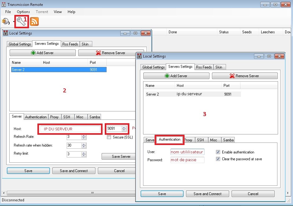 Télécharger le client Transmission Remote via le lien suivant : http://code.google.com/p/transmisson-remote-gui/downloads/list. Une fois installé, ouvrez ce dernier et voir ci-dessous pour la configuration du client lourd :
