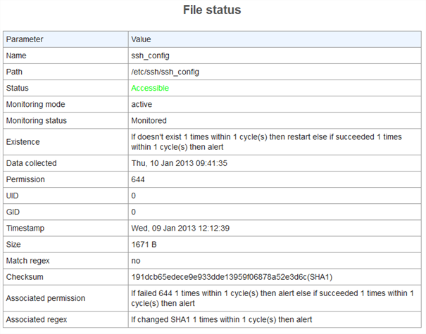 Maintenant, si vous cliquez sur un de vos services, par exemple « ssh_config », on obtient de nombreuses informations :