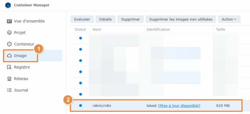 Avant de commencer : veillez à utiliser l'image n8nio/n8n:latest à la place de docker.n8n.io/n8nio/n8n comme nom d'image Docker. Sinon, j'ai remarqué que Container Manager ne détectait pas les mises à jour de l'image (correction à apporter si vous avez suivi mon tutoriel d'installation).