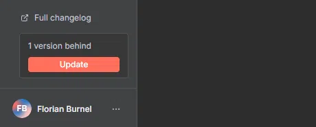 L'interface de n8n met en évidence lorsqu'une nouvelle mise à jour est disponible. Ici, nous pouvons voir que j'ai 1 version de retard.
