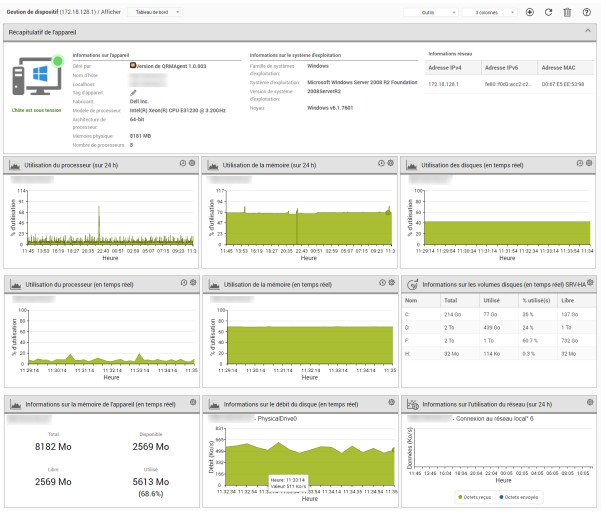 - Utilisation du CPU : temps réel et/ou sur 24h