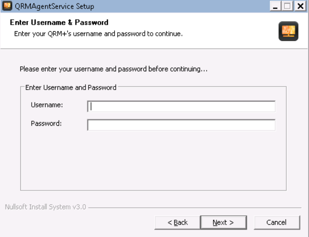 9. Entrez le nom de l'utilisateur et le mot de passe du compte qui sera amené à superviser la machine (Admin ou, plutôt un compte dédié).