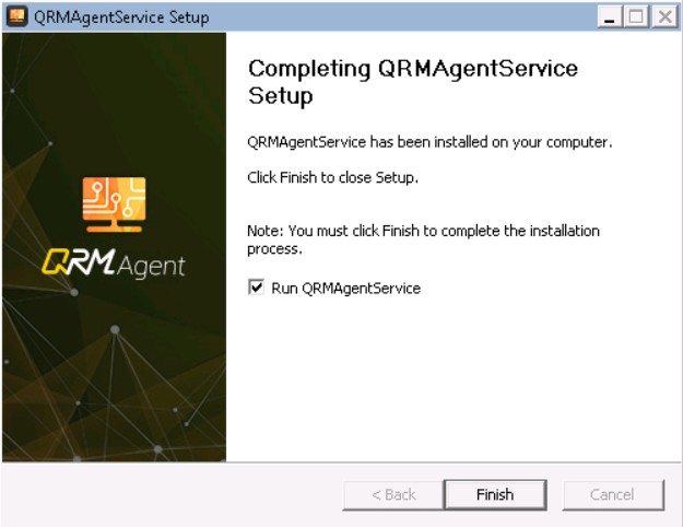 10. Cliquez sur Finish (en ayant activé la case Run QRMAgentService)
