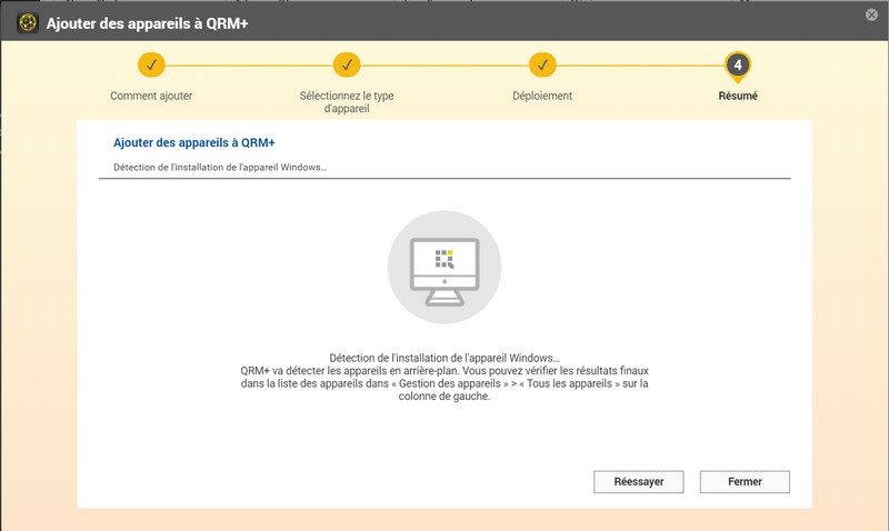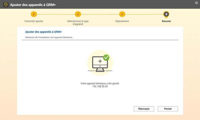 Dans les 2 cas (via recherche réseau sur votre LAN ou via la gestion des dispositifs), lorsque vous aurez cliqué sur le « + » :