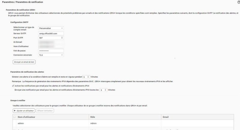 Ensuite, nous pouvons configurer les paramètres de notifications en déclarant un serveur SMTP à utiliser :