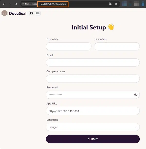 En complément, il sera nécessaire de configurer une règle de NAT sur votre routeur ou votre firewall pour permettre l'accès externe à l'application. Après avoir effectué cette configuration, vous pourrez accéder à l'application DocuSeal via ce nom de domaine personnalisé :