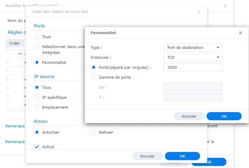 Si le pare-feu de votre NAS est activé, veillez à créer une règle de pare-feu pour autoriser les connexions sur le port 3000.