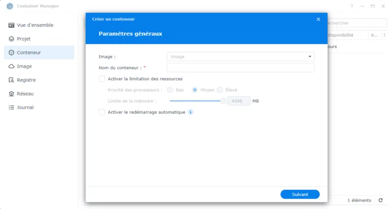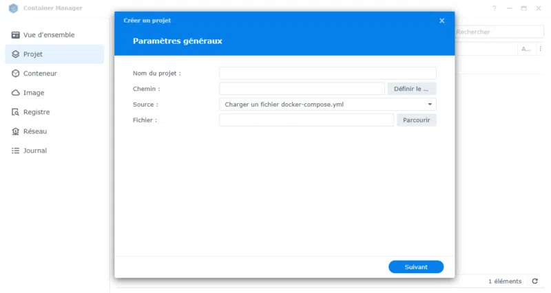 En passant par la section "Conteneur", vous effectuez la création manuelle d'un conteneur en faisant abstraction sur le fait de pouvoir utiliser Docker Compose (via la section "Projet"). Avant que l'application Docker devienne Container Manager, c'était la seule option.