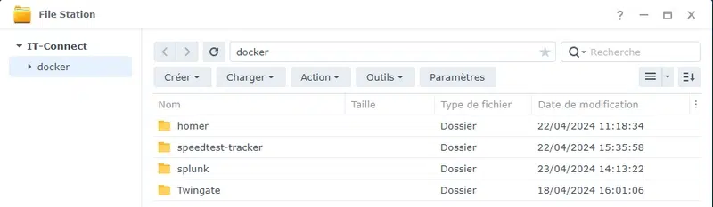 Ceci vous permettra d'organiser données associées à vos conteneurs Docker déployés sur votre NAS Synology. Dans le répertoire du conteneur, il pourra y avoir d'autres dossiers (data, config, etc...) en fonction des besoins du conteneur en lui-même.