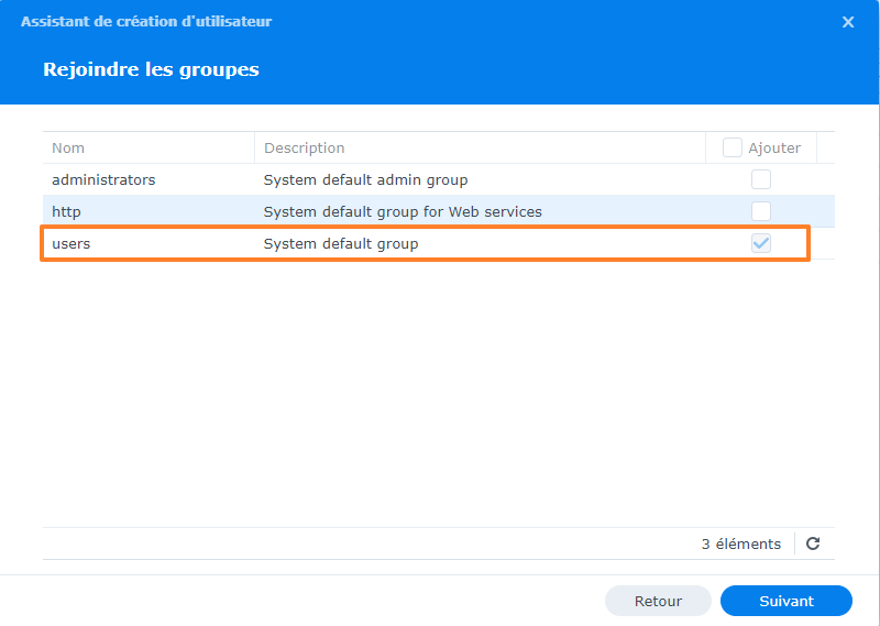 4 - Ajoutez l'utilisateur au groupe "users" (ou à votre groupe "docker" si vous l'avez créé en amont).