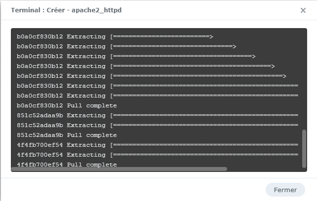 Container Manager va télécharger l'image associée à notre projet et construire le conteneur associé.