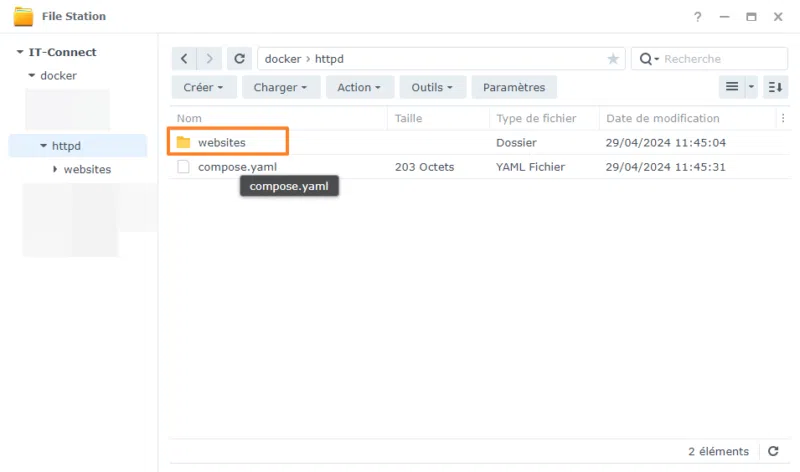 Dans le répertoire "websites" de votre NAS, vous pouvez déposer un ou plusieurs fichiers.