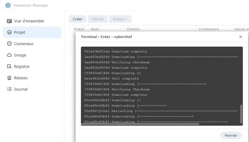Ensuite, ouvrez "Container Manager" puis cliquez sur "Projet" afin de créer un nouveau projet en cliquant sur le bouton nommé "Créer".