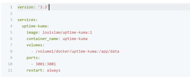 Dans le cas présent, l'application sera joignable en HTTP sur le port 3001. Veillez à vérifier également le chemin vers le dossier "data", sous l'instruction "volumes".