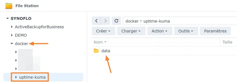 Avant toute chose, vous devez installer l'application "Container Manager" sur votre NAS, si ce n'est pas déjà fait. Puis, vous devez créer un dossier pour ce conteneur. Pour ma part, il s'agit du répertoire "uptime-kuma" créé sous "docker".