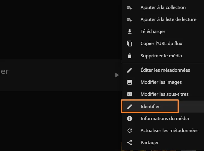 Quand vous accédez aux propriétés d'une piste vidéo, vous avez diverses actions possibles. Vous pouvez l'ajouter à une collection (très utile pour regrouper certaines vidéos) ou une playlist, mais aussi utiliser l'option "Identifier".