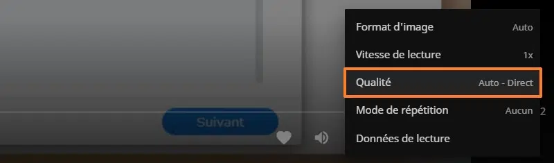Maintenant, accédez aux réglages du lecteur vidéo (cliquez sur l'engrenage), puis sur "Qualité". Ici, choisissez une qualité inférieure (ou un débit inférieur), puis validez.