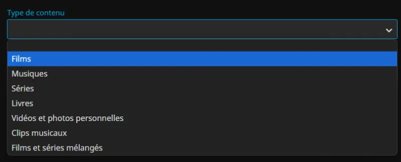 Vous devez définir le type de contenu, à partir de la liste proposée.
