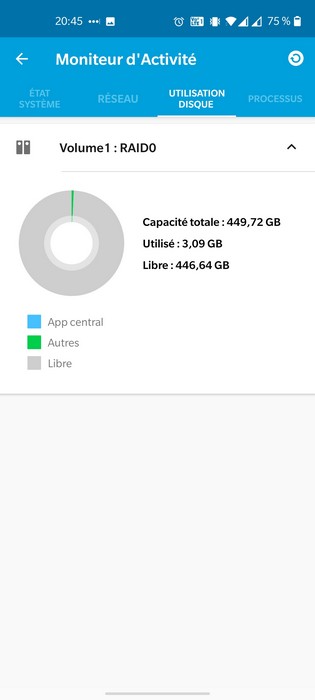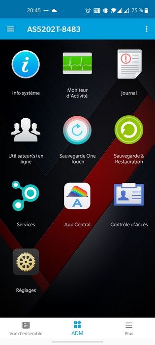 Comme vous pouvez le voir sur les copies d'écran ci-dessous, l'application AiMaster offre un accès complet au NAS. Bien que l'on ne puisse pas tout faire, disons qu'au quotidien l'application sera bien pratique ! La configuration de base est possible, ainsi que l'accès aux journaux et à l'activité du NAS en temps réel (CPU, RAM, stockage, processus, réseau), la gestion des utilisateurs, ou encore l'installation d'une application à partir de l'App Central.