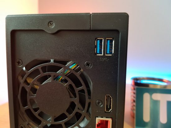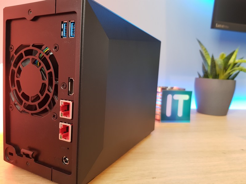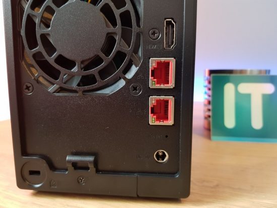 Ci-dessous, deux clichés pour voir l'arrière du NAS plus en détail.