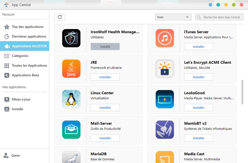 Néanmoins, le store d'ASUSTOR est très riche, mais un peu désorganisé : des applications apparaissent dans plusieurs versions, ce qui peut s'avérer perturbant. Pour les utilisateurs avertis, comme moi ?, on peut s'en sortir et parvenir à installer les bonnes applis en fonction de ses besoins.
