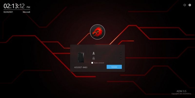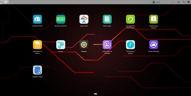 Le thème mis en place par ASUSTOR sur ce modèle n'est pas le thème habituel : celui-ci est également dans l'esprit gaming et reprend le code couleur du boîtier.