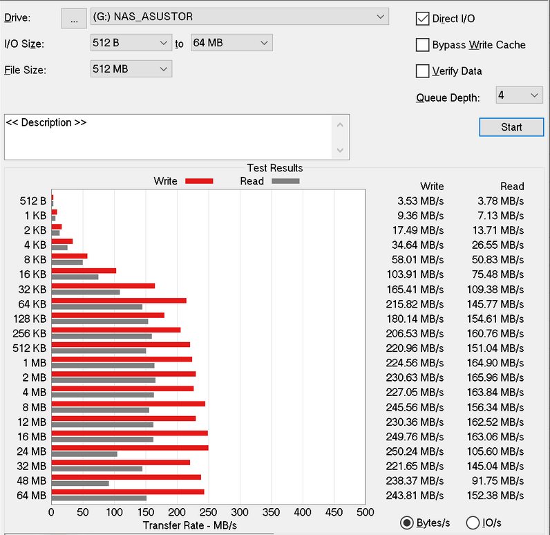 C. Benchmark avec le logiciel ATTO sur connexion 2.5 Gbit/s