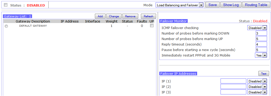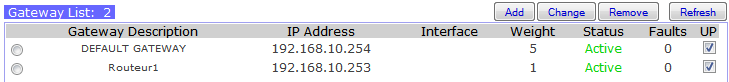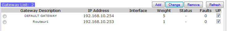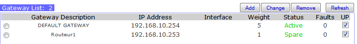 Si vous avez choisi "Fail-over", le panneau des passerelles devrait ressembler à cela :