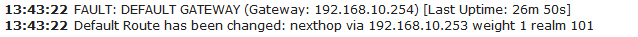 On voit qu’après avoir défini la passerelle "DEFAUT GATEWAY" en "FAULT", il change la route par défaut pour l'orienter vers notre seconde passerelle.