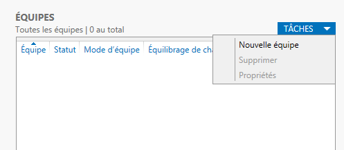 Dans le bas à gauche dans le cadre "Équipes", cliquez sur "Tâches" et "Nouvelle équipe".