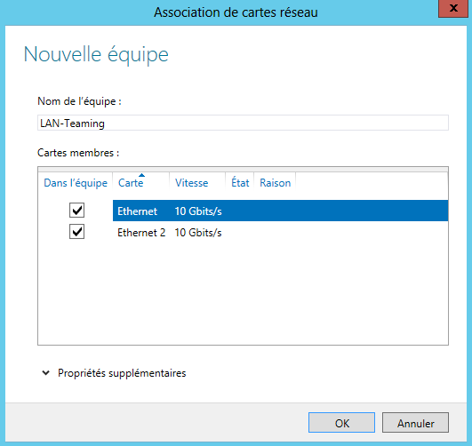 – de mettre toutes les cartes réseaux en teaming