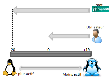 ATTENTION: les utilisateurs autres que le super-utilisateur root ne peuvent que diminuer la priorité de leurs processus. Et encore, ils sont restreints à la plage de 0 à 19. Seul root peut jouer sur l’intégralité de l’échelle, pour n’importe quel processus actif.