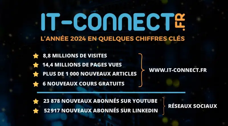 Ce début d'année me donne l'occasion de vous adresser mes meilleurs vœux pour 2025 au nom de toute l'équipe IT-Connect : santé, succès et épanouissement, tant sur le plan personnel que professionnel. C'est aussi l'occasion de prendre un moment pour faire un récapitulatif de l'année 2024.