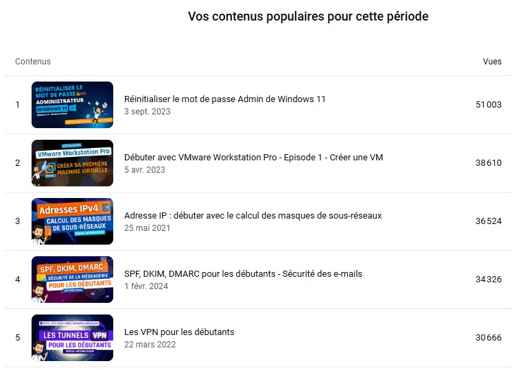 À titre d'information, voici les 5 vidéos les plus visionnées en 2024 :