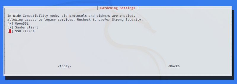 L'activation de ce mode compatibilité s'effectue via Kali-tweak. Tout cela est expliqué dans la documentation SSH de Kali Linux.