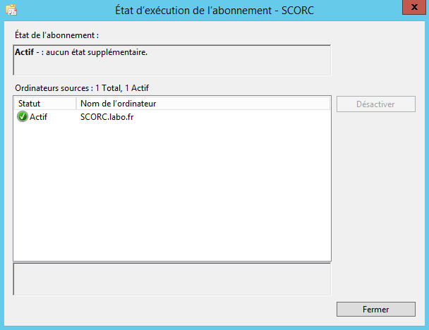 En faisant un clic droit sur l'abonnement est "État d'exécution" vous pourrez voir si l'abonnement est actif ou en erreur.